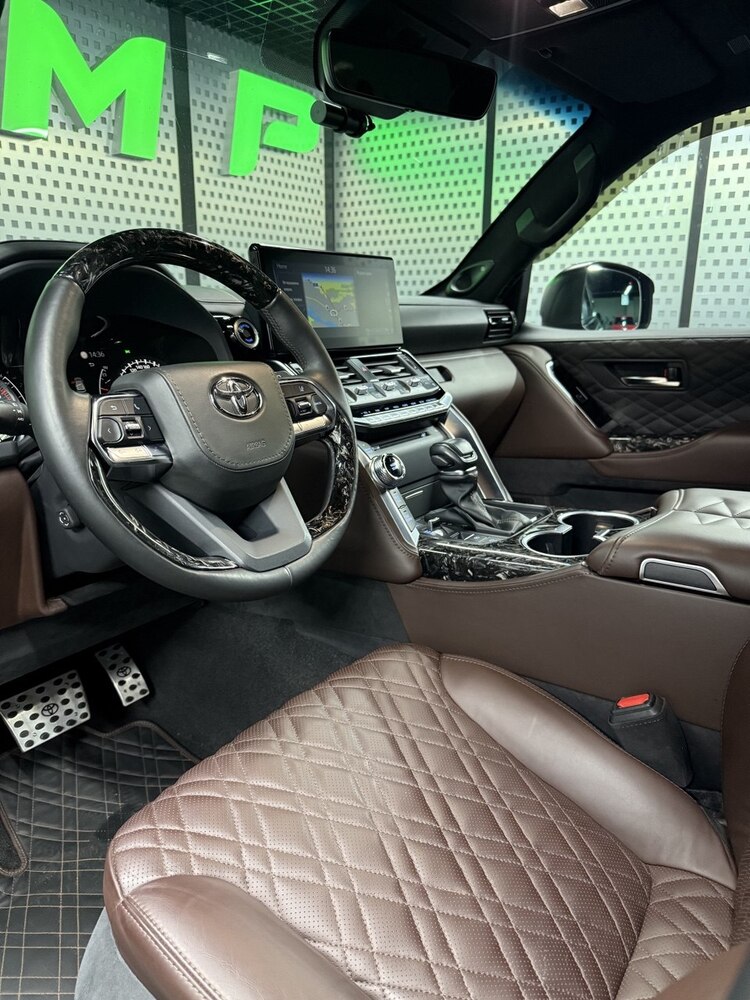 Interior features Nappa leather, Alcantara, and forged carbon